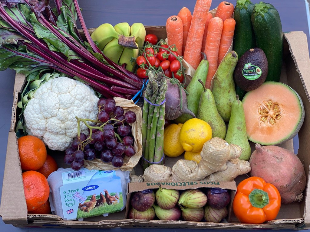 Jamie & Bill are local greengrocers who are offering a delivery service of fruit & vegetable boxes to your door.