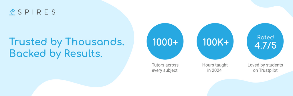 Yes, we have numerous testimonials from our previous students. Spires is extremely proud of our online reviews and live class reviews, available on TrustPilot and our website. We’re also one of the top-rated tutoring companies on Trustpilot, with over 1,000 reviews and an average score of 4.7 out of 5. Alongside these reviews, our students have reported outstanding results in our 2025 Client Feedback Survey: GCSE Results 97% of students improved by an average of 2.4 grades 78% of students achieved grades 7-9 (67% started on 4-6) 53% achieved a grade 8 or 9 A-Level Results 93% of A-level students saw their grades rise 61% achieved an A or A* – that’s 2x the national average Undergraduate Results 93% of undergraduates moved up by a grade 40% secured a first-class (0% were on a first before working with us)